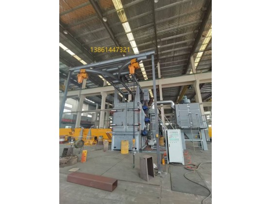 2. 雙吊鉤設(shè)計:雙吊鉤可以實現(xiàn)交替作業(yè),一個吊鉤在拋丸室內(nèi)進(jìn)行清理時,另一個吊鉤可以進(jìn)行裝卸工件的操作,大大提高了工作效率,減少了設(shè)備的閑置時間。