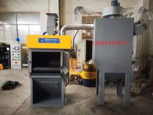 是拋丸機的一種,通過履帶的轉動將工件轉動至拋丸室內,自動化程度高,安全性好。