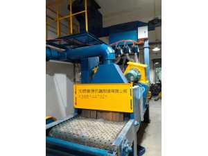 不銹鋼網(wǎng)帶式拋丸機(非標(biāo)拋丸機)是由輸送網(wǎng)帶作為工件的承載體,傳送網(wǎng)帶又分為鋼絲網(wǎng)帶和耐磨橡膠帶兩種方式。拋丸室的一端為裝件工位,另一端為卸件工位。工作時,在裝件工位將零件置于傳送帶上,傳送帶緩緩連續(xù)進入拋丸室進行拋丸清理,接著送到卸件工位將工件取下。此機特點是:連續(xù)進行工作,無任何碰撞,中小件均適合,生產(chǎn)批量大。