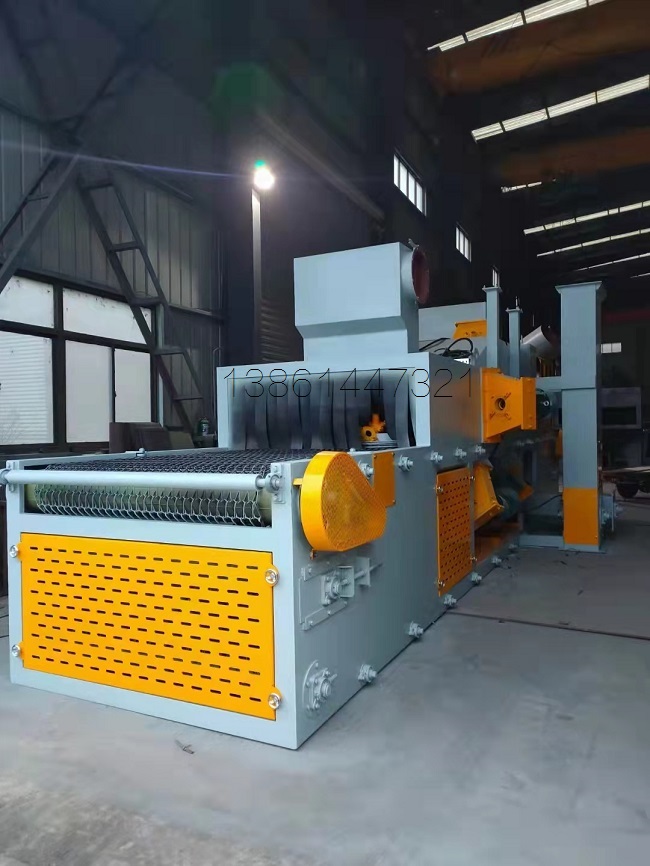 ★網(wǎng)帶前進速度可變頻調(diào)速,拋丸均勻,清理效果高;