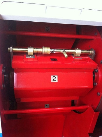 3.3撥下固緊桿,便可取下滾筒。蓋筒蓋時(shí),可按以上做逆動(dòng)作。 注:手柄桿之位置必須如圖3所示,壓至最低點(diǎn),以免同拉桿相碰。4、工件的裝入: